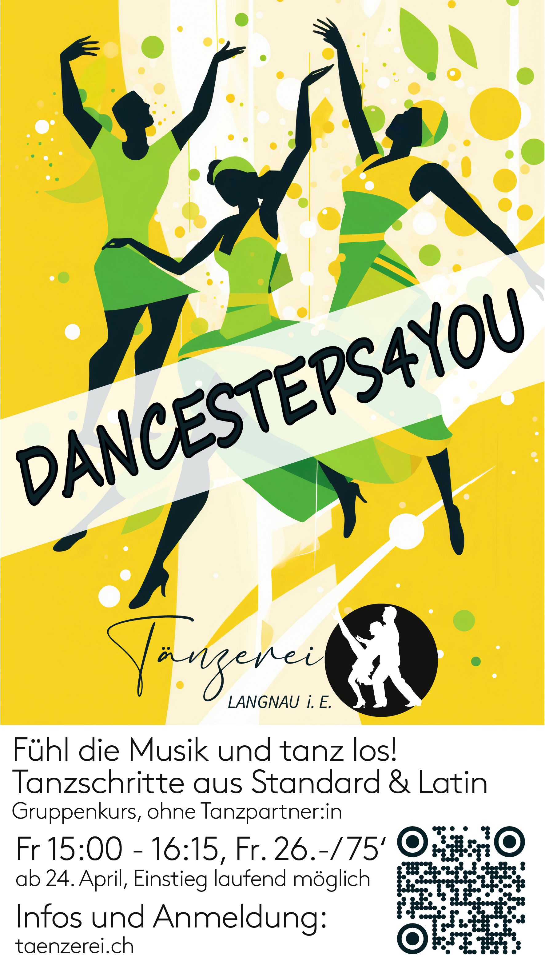 Mit „DANCESTEPS4YOU“ kannst du ohne Tanzpartner:in in der Gruppe Standard- und Latin-Tanzschritte lernen und das Gefühl für Musik und Bewegung entwickeln.