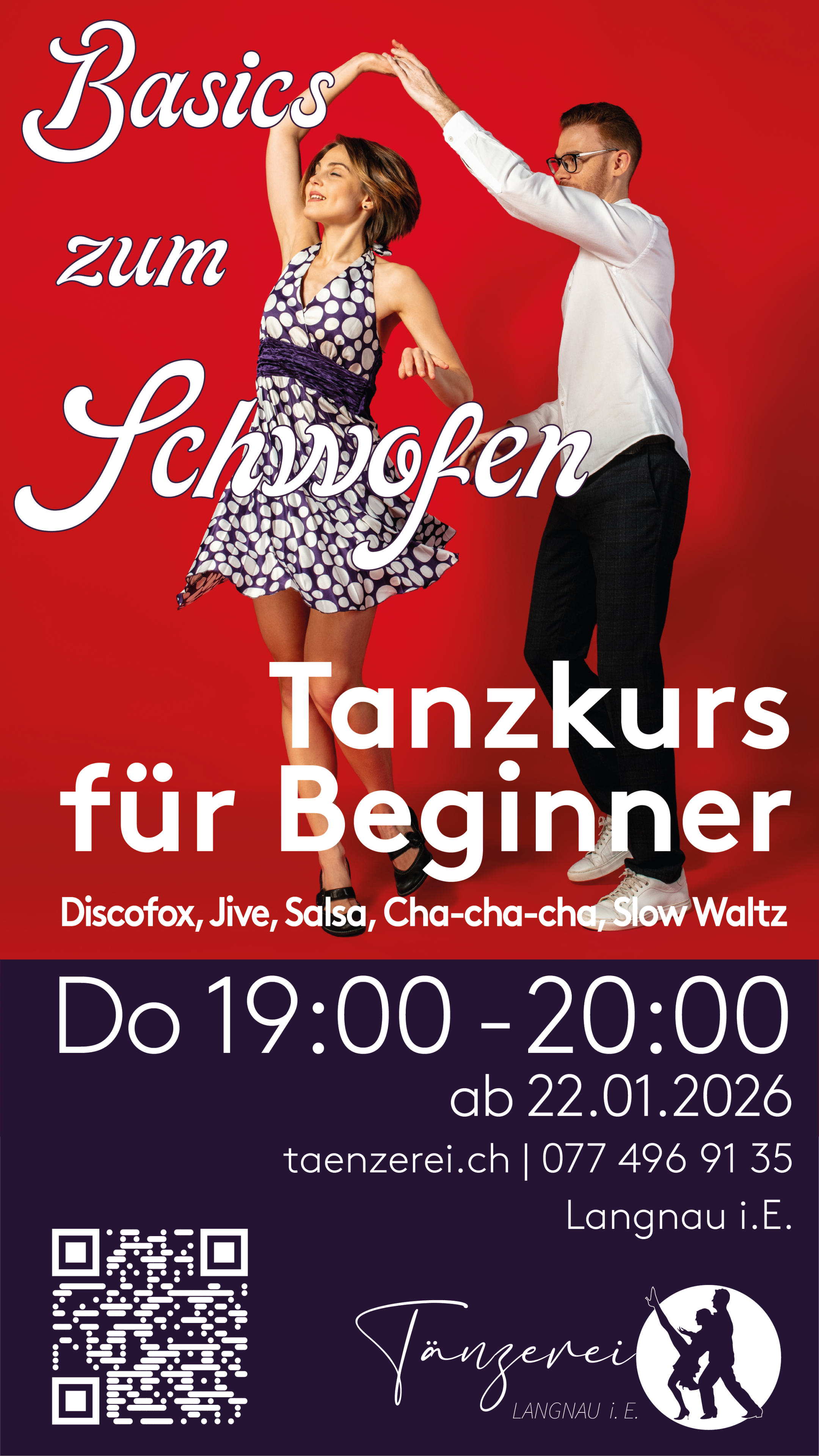 Von Kurs zu Kurs lernt ihr neue Figuren dazu - aber auch das Repetieren des bisher Gelernten kommt nicht zu kurz. Dank Unterricht im harmonierenden Team-Teaching seid ihr bestens betreut und dürft euch auch auf die eine und andere spontan einfallende Veranschaulichung freuen.